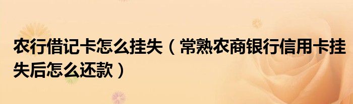 导读 大家好,小元来为大家解答问题。农行借记卡怎么挂失,常熟农商银行信用卡挂失后怎么还款这个很多人还不知道,现在让我们一起来了解下吧!
