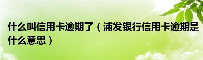 导读 大家好,小元来为大家解答问题。什么叫信用卡逾期了,浦发银行信用卡逾期是什么意思这个很多人还不知道,现在让我们一起来了解下吧!首先,