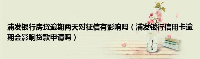 导读 大家好,小元来为大家解答问题。浦发银行房贷逾期两天对征信有影响吗,浦发银行信用卡逾期会影响贷款申请吗这个很多人还不知道,现在让我们