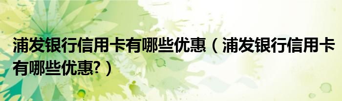 导读 大家好,小元来为大家解答问题。浦发银行信用卡有哪些优惠,浦发银行信用卡有哪些优惠?这个很多人还不知道,现在让我们一起来了解下吧!首先