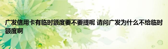 导读 大家好,小元来为大家解答问题。广发信用卡有临时额度要不要提呢,请问广发为什么不给临时额度啊这个很多人还不知道,现在让我们一起来了解