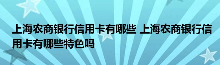 导读 大家好,小元来为大家解答问题。上海农商银行信用卡有哪些,上海农商银行信用卡有哪些特色吗这个很多人还不知道,现在让我们一起来了解下吧