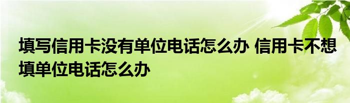 导读 大家好,小元来为大家解答问题。填写信用卡没有单位电话怎么办,信用卡不想填单位电话怎么办这个很多人还不知道,现在让我们一起来了解下吧