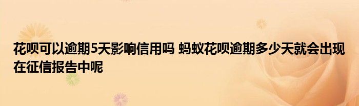 导读 大家好,小元来为大家解答问题。花呗可以逾期5天影响信用吗,蚂蚁花呗逾期多少天就会出现在征信报告中呢这个很多人还不知道,现在让我们一起