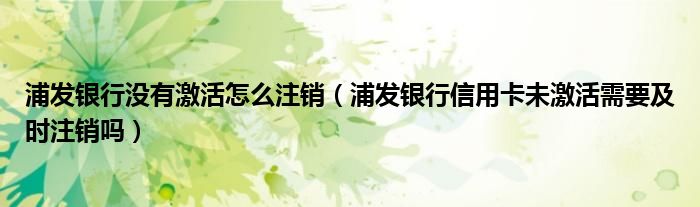 导读 大家好,小元来为大家解答问题。浦发银行没有激活怎么注销,浦发银行信用卡未激活需要及时注销吗这个很多人还不知道,现在让我们一起来了解
