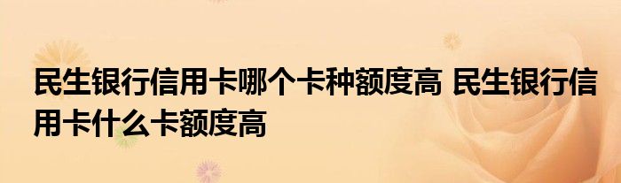 导读 大家好,小元来为大家解答问题。民生银行信用卡哪个卡种额度高,民生银行信用卡什么卡额度高这个很多人还不知道,现在让我们一起来了解下吧