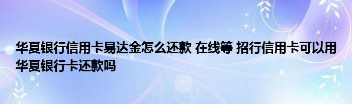 导读 大家好,小元来为大家解答问题。华夏银行信用卡易达金怎么还款,在线等,招行信用卡可以用华夏银行卡还款吗这个很多人还不知道,现在让我们