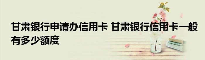导读 大家好,小元来为大家解答问题。甘肃银行申请办信用卡,甘肃银行信用卡一般有多少额度这个很多人还不知道,现在让我们一起来了解下吧!