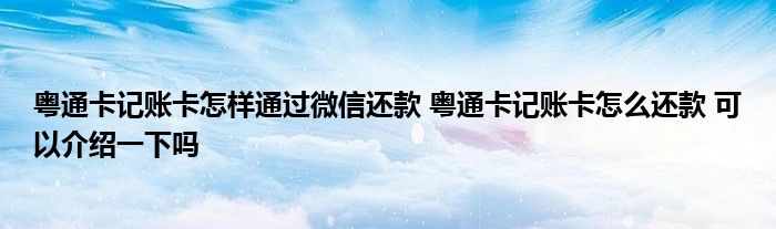 导读 大家好,小元来为大家解答问题。粤通卡记账卡怎样通过微信还款,粤通卡记账卡怎么还款,可以介绍一下吗这个很多人还不知道,现在让我们一起