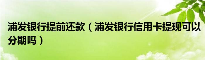 大家好,小元来为大家解答问题。浦发银行提前还款,浦发银行信用卡提现可以分期吗这个很多人还不知道,现在让我们一起来了解下吧!