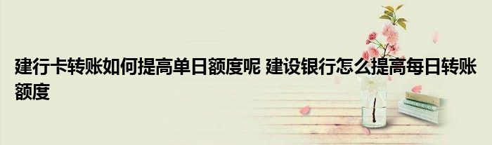 导读 大家好,小元来为大家解答问题。建行卡转账如何提高单日额度呢,建设银行怎么提高每日转账额度这个很多人还不知道,现在让我们一起来了解下