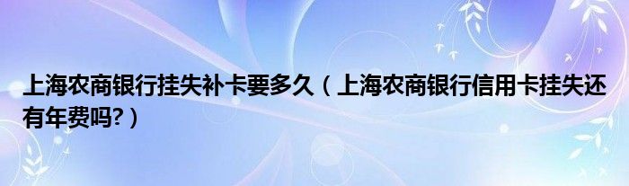 导读 大家好,小元来为大家解答问题。上海农商银行挂失补卡要多久,上海农商银行信用卡挂失还有年费吗?这个很多人还不知道,现在让我们一起来了解
