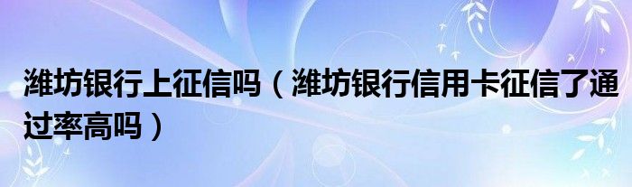 导读 大家好,小元来为大家解答问题。潍坊银行上征信吗,潍坊银行信用卡征信了通过率高吗这个很多人还不知道,现在让我们一起来了解下吧!