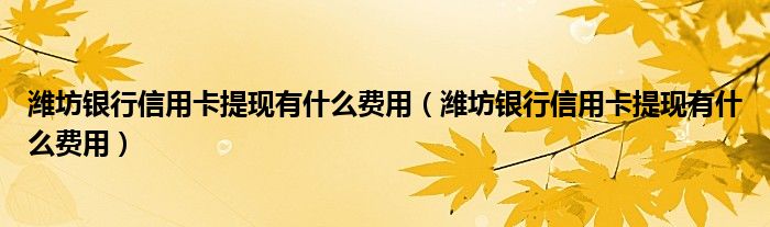 导读 大家好,小元来为大家解答问题。潍坊银行信用卡提现有什么费用,潍坊银行信用卡提现有什么费用这个很多人还不知道,现在让我们一起来了解下