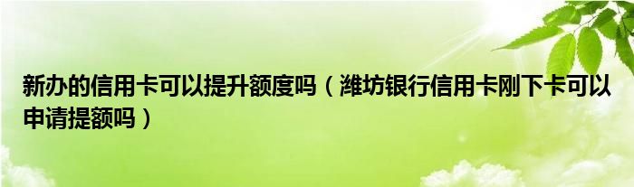 导读 大家好,小元来为大家解答问题。新办的信用卡可以提升额度吗,潍坊银行信用卡刚下卡可以申请提额吗这个很多人还不知道,现在让我们一起来了