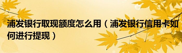 导读 大家好,小元来为大家解答问题。浦发银行取现额度怎么用,浦发银行信用卡如何进行提现这个很多人还不知道,现在让我们一起来了解下吧!首先