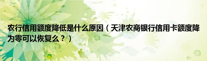 大家好,小元来为大家解答问题。农行信用额度降低是什么原因,天津农商银行信用卡额度降为零可以恢复么?这个很多人还不知道,现在让我们一起来了解下吧!
