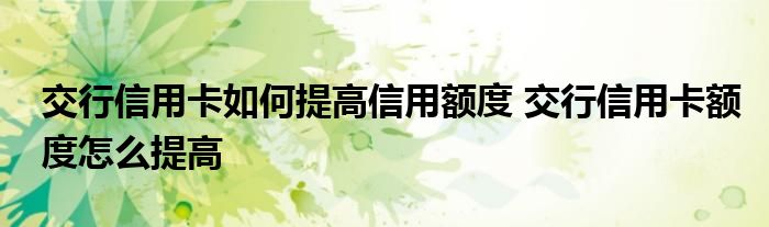 导读 大家好,小元来为大家解答问题。交行信用卡如何提高信用额度,交行信用卡额度怎么提高这个很多人还不知道,现在让我们一起来了解下吧!