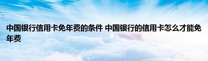 导读 大家好,小元来为大家解答问题。中国银行信用卡免年费的条件,中国银行的信用卡怎么才能免年费这个很多人还不知道,现在让我们一起来了解下