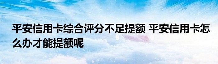 导读 大家好,小元来为大家解答问题。平安信用卡综合评分不足提额,平安信用卡怎么办才能提额呢这个很多人还不知道,现在让我们一起来了解下吧!