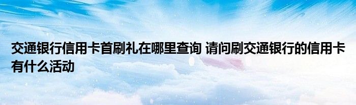 导读 大家好,小元来为大家解答问题。交通银行信用卡首刷礼在哪里查询,请问刷交通银行的信用卡有什么活动这个很多人还不知道,现在让我们一起来