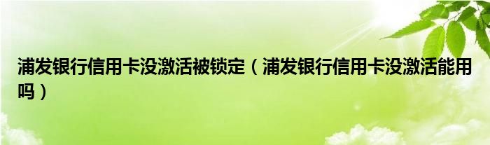 导读 大家好,小元来为大家解答问题。浦发银行信用卡没激活被锁定,浦发银行信用卡没激活能用吗这个很多人还不知道,现在让我们一起来了解下吧!