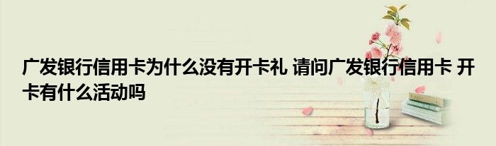 导读 大家好,小元来为大家解答问题。广发银行信用卡为什么没有开卡礼,请问广发银行信用卡,开卡有什么活动吗这个很多人还不知道,现在让我们一