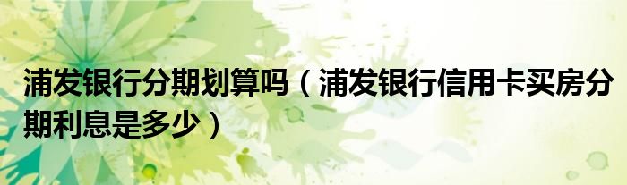 导读 大家好,小元来为大家解答问题。浦发银行分期划算吗,浦发银行信用卡买房分期利息是多少这个很多人还不知道,现在让我们一起来了解下吧!首