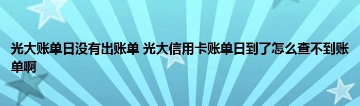 导读 大家好,小元来为大家解答问题。光大账单日没有出账单,光大信用卡账单日到了怎么查不到账单啊这个很多人还不知道,现在让我们一起来了解下