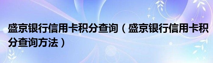 大家好,小元来为大家解答问题。盛京银行信用卡积分查询,盛京银行信用卡积分查询方法这个很多人还不知道,现在让我们一起来了解下吧!