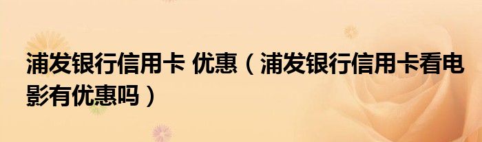 大家好,小元来为大家解答问题。浦发银行信用卡 优惠,浦发银行信用卡看电影有优惠吗这个很多人还不知道,现在让我们一起来了解下吧!