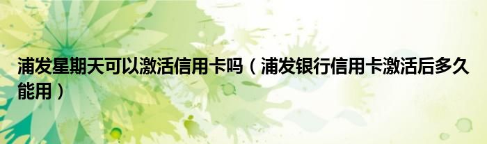 导读 大家好,小元来为大家解答问题。浦发星期天可以激活信用卡吗,浦发银行信用卡激活后多久能用这个很多人还不知道,现在让我们一起来了解下吧