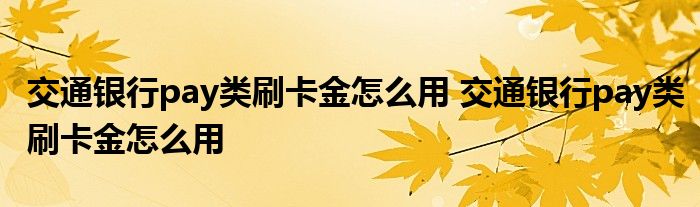 导读 大家好,小元来为大家解答问题。交通银行pay类刷卡金怎么用,交通银行pay类刷卡金怎么用这个很多人还不知道,现在让我们一起来了解下吧!