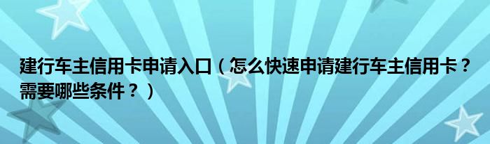 导读 大家好,小元来为大家解答问题。建行车主信用卡申请入口,怎么快速申请建行车主信用卡?需要哪些条件?这个很多人还不知道,现在让我们一起