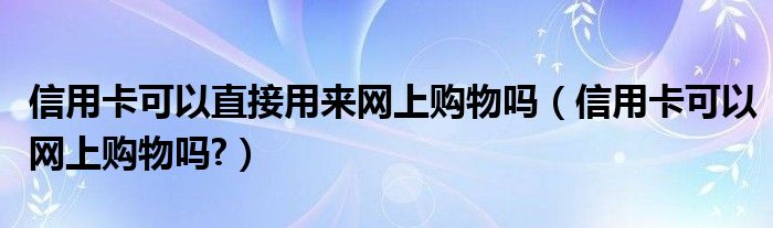 导读 大家好,小元来为大家解答问题。信用卡可以直接用来网上购物吗,信用卡可以网上购物吗?这个很多人还不知道,现在让我们一起来了解下吧!