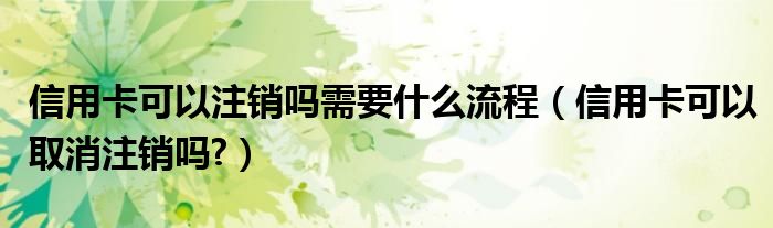 导读 大家好,小元来为大家解答问题。信用卡可以注销吗需要什么流程,信用卡可以取消注销吗?这个很多人还不知道,现在让我们一起来了解下吧!