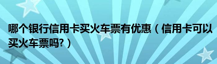 导读 大家好,小元来为大家解答问题。哪个银行信用卡买火车票有优惠,信用卡可以买火车票吗?这个很多人还不知道,现在让我们一起来了解下吧!