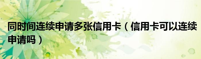 导读 大家好,小元来为大家解答问题。同时间连续申请多张信用卡,信用卡可以连续申请吗这个很多人还不知道,现在让我们一起来了解下吧!