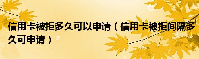 导读 大家好,小元来为大家解答问题。信用卡被拒多久可以申请,信用卡被拒间隔多久可申请这个很多人还不知道,现在让我们一起来了解下吧!