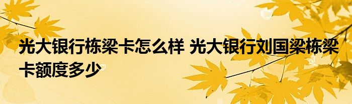 导读 大家好,小元来为大家解答问题。光大银行栋梁卡怎么样,光大银行刘国梁栋梁卡额度多少这个很多人还不知道,现在让我们一起来了解下吧!