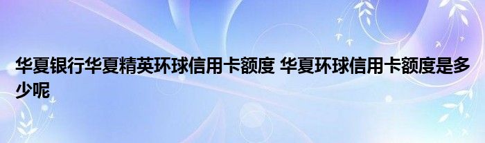 导读 大家好,小元来为大家解答问题。华夏银行华夏精英环球信用卡额度,华夏环球信用卡额度是多少呢这个很多人还不知道,现在让我们一起来了解下