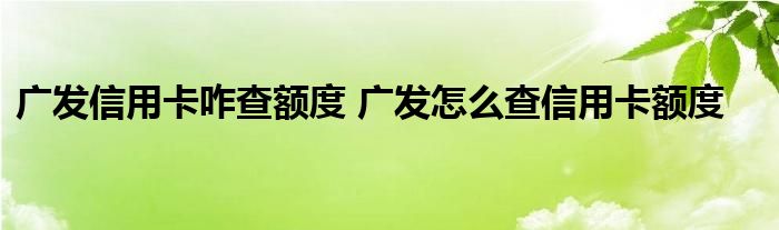 导读 大家好,小元来为大家解答问题。广发信用卡咋查额度,广发怎么查信用卡额度这个很多人还不知道,现在让我们一起来了解下吧!