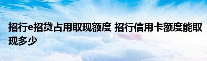 导读 大家好,小元来为大家解答问题。招行e招贷占用取现额度,招行信用卡额度能取现多少这个很多人还不知道,现在让我们一起来了解下吧!