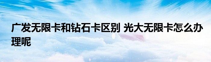 导读 大家好,小元来为大家解答问题。广发无限卡和钻石卡区别,光大无限卡怎么办理呢这个很多人还不知道,现在让我们一起来了解下吧!