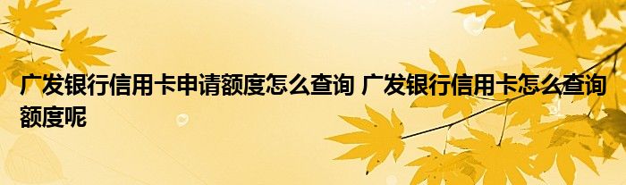 导读 大家好,小元来为大家解答问题。广发银行信用卡申请额度怎么查询,广发银行信用卡怎么查询额度呢这个很多人还不知道,现在让我们一起来了解
