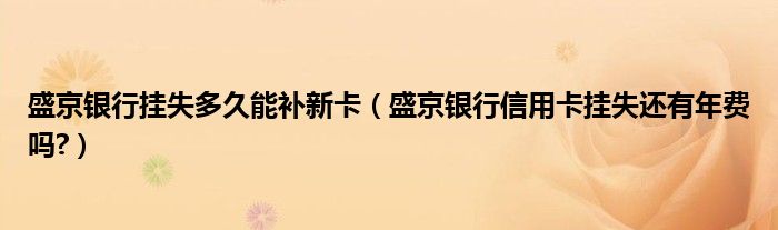 导读 大家好,小元来为大家解答问题。盛京银行挂失多久能补新卡,盛京银行信用卡挂失还有年费吗?这个很多人还不知道,现在让我们一起来了解下吧!