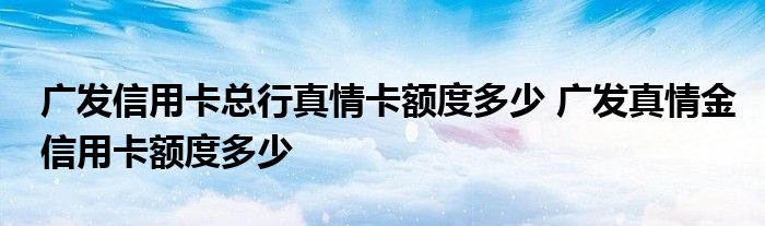 导读 大家好,小元来为大家解答问题。广发信用卡总行真情卡额度多少,广发真情金信用卡额度多少这个很多人还不知道,现在让我们一起来了解下吧!