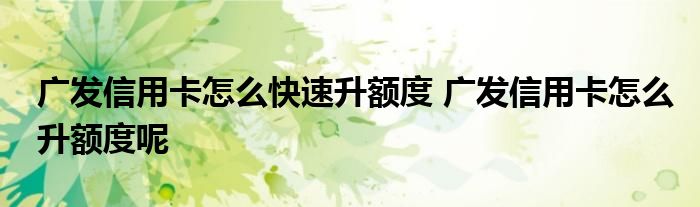 导读 大家好,小元来为大家解答问题。广发信用卡怎么快速升额度,广发信用卡怎么升额度呢这个很多人还不知道,现在让我们一起来了解下吧!