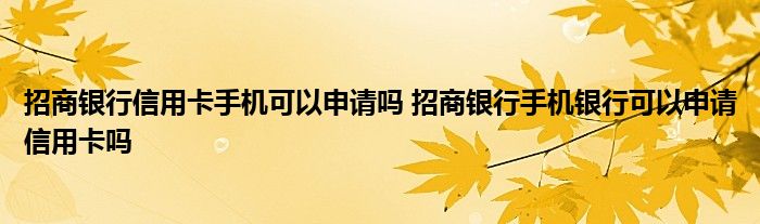 导读 大家好,小元来为大家解答问题。招商银行信用卡手机可以申请吗,招商银行手机银行可以申请信用卡吗这个很多人还不知道,现在让我们一起来了