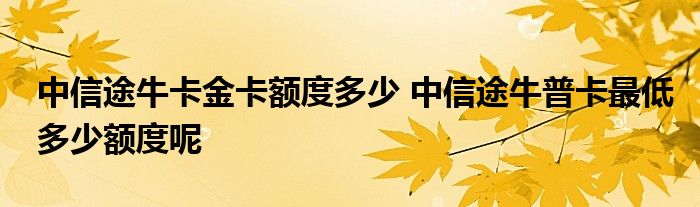 导读 大家好,小元来为大家解答问题。中信途牛卡金卡额度多少,中信途牛普卡最低多少额度呢这个很多人还不知道,现在让我们一起来了解下吧!
